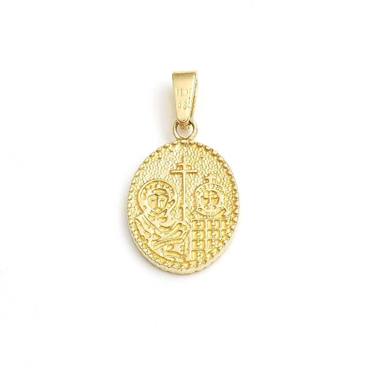 Κωσταντινάτο απο χρυσό 14 καρατίων, διπλής όψεως. Ένα κόσμημα-φυλαχτό που θα συντροφεύει το παιδί σε όλη του την ζωή.