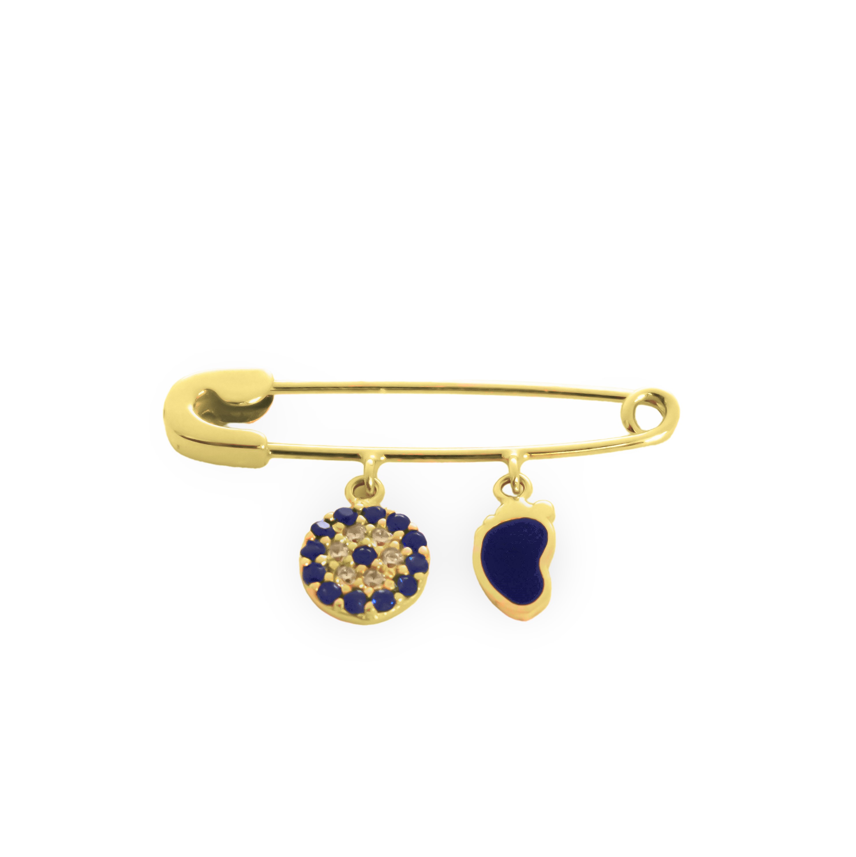 Παιδική παραμάνα με κρεμαστό ματάκι-στόχο και πατουσίτσα με μπλέ σμάλτο. Τα κρεμαστά μπορούν να φορεθούν και σε μενταγιόν.