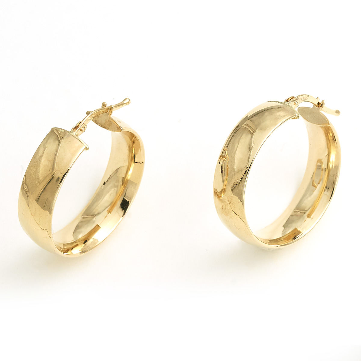 χρυσοί κρίκοι σε φαρδιά γραμμη. Ιδανικοί για να εντυπωσιάσεις με τις καθημερινές σου εμφανίσεις.