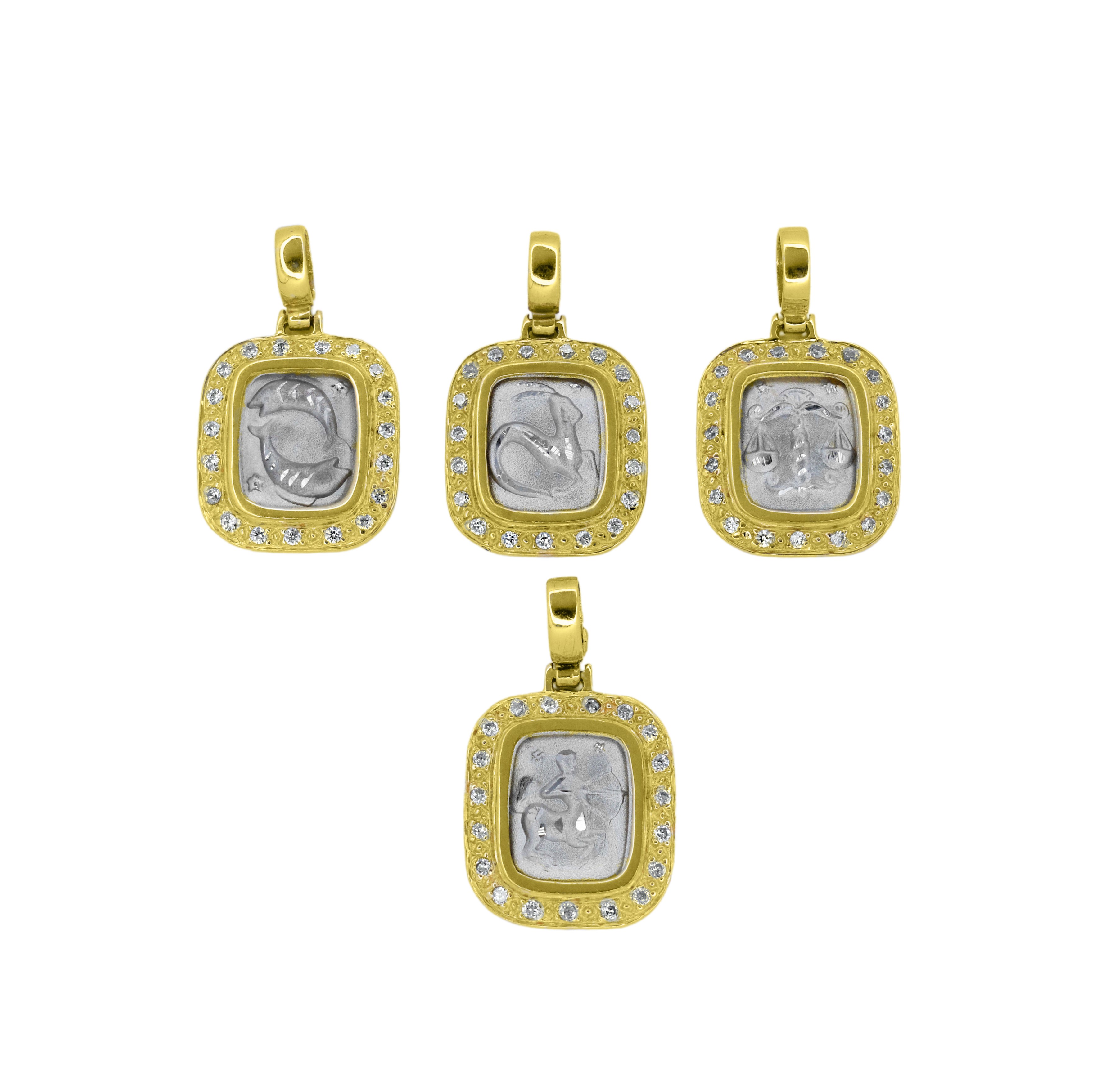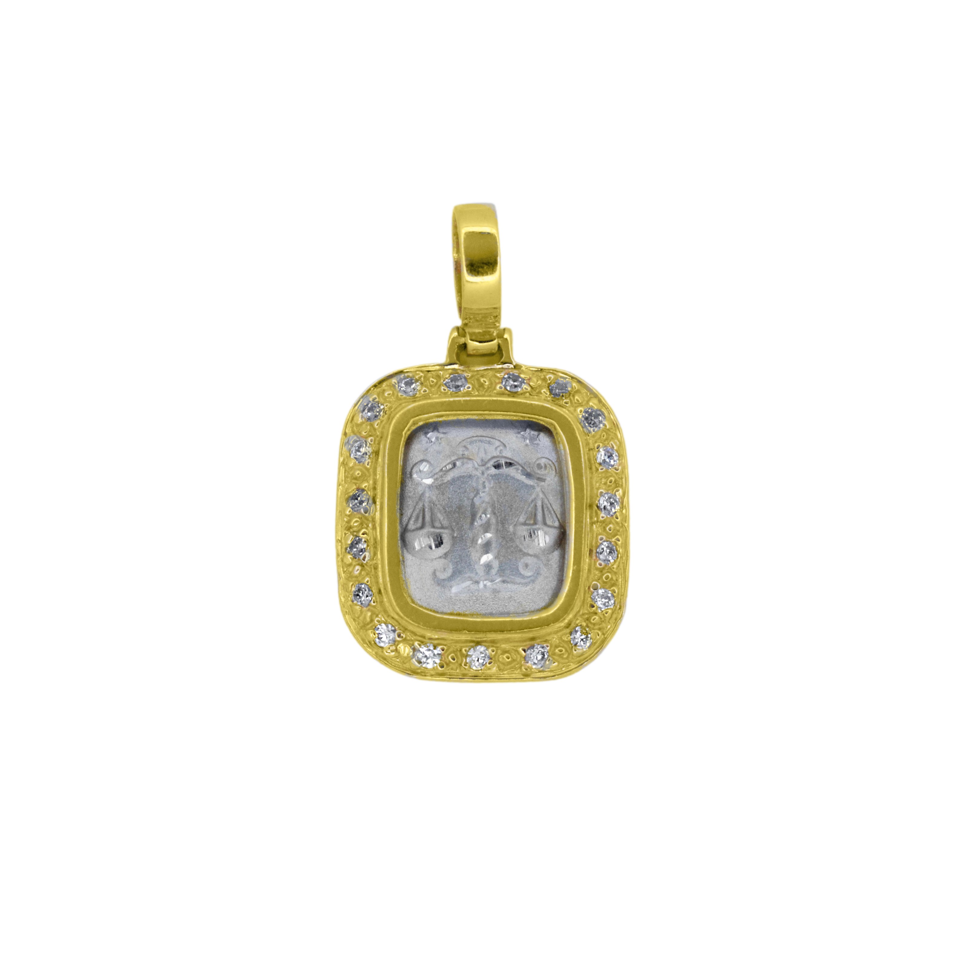 Πανέμορφη και συνάμα κλασική απεικόνιση του ζωδίου σε λευκό και χρυσό χρώμα στολισμένο περιμετρικά με λευκές πέτρες ζιργκόν