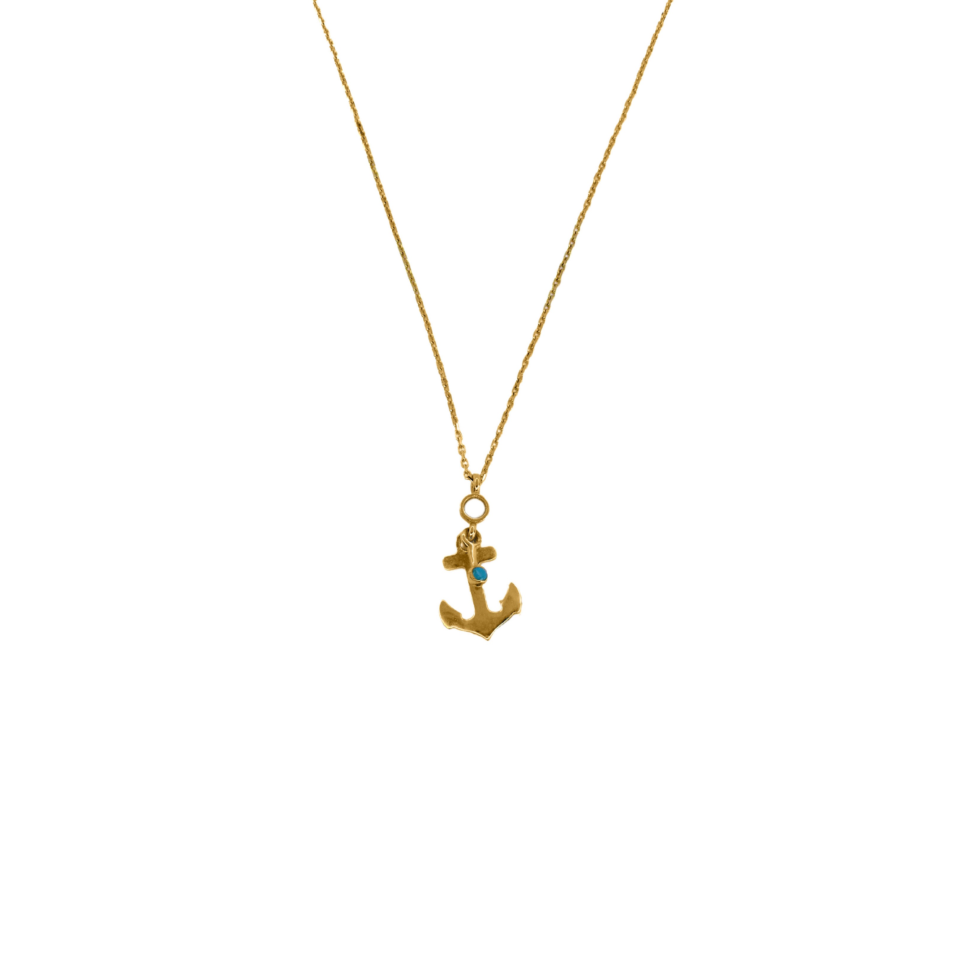 Χρυσό κολιέ 14 καρατίων άγκυρα με τιρκουάζ πέτρα