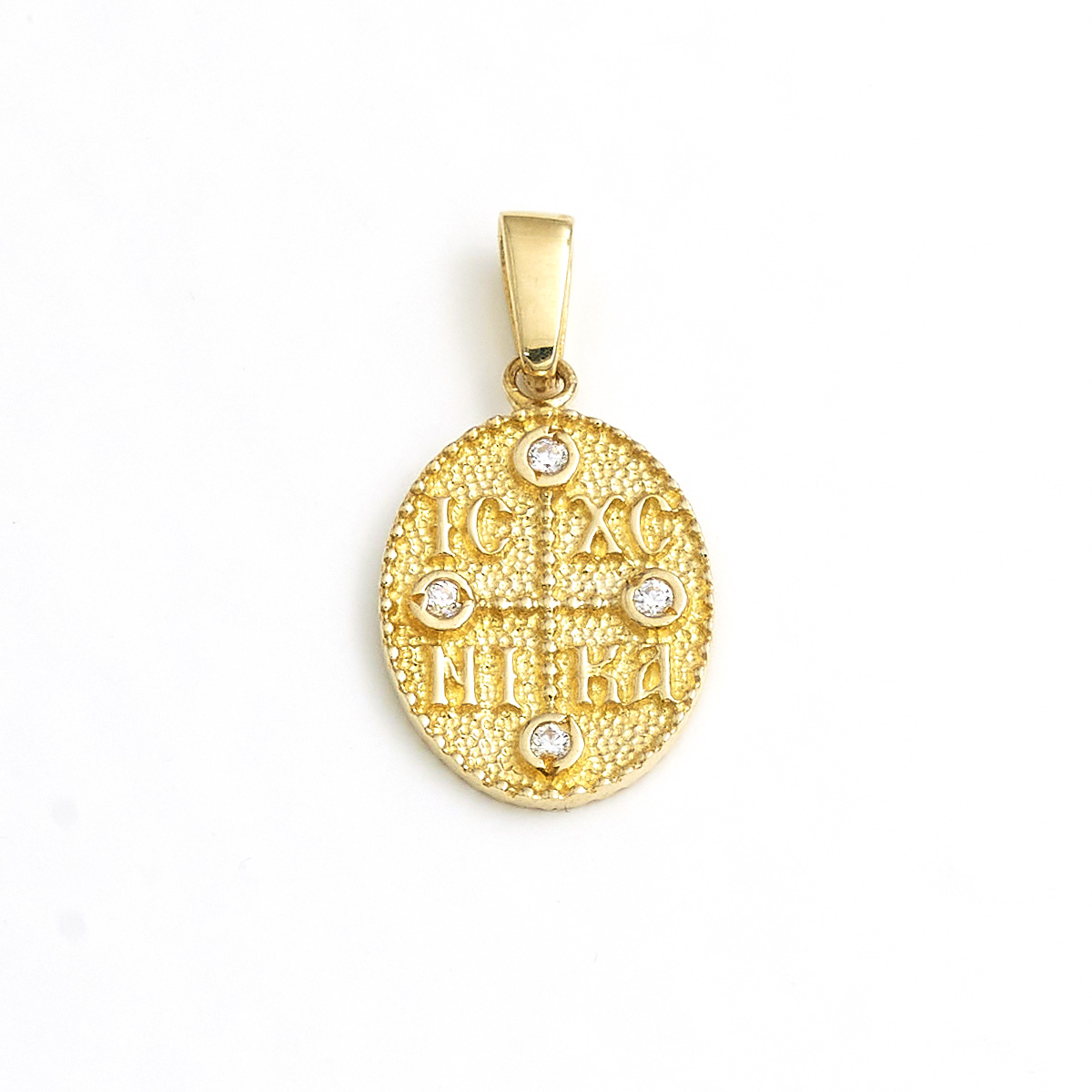 Κωσταντινάτο απο χρυσό 14 καρατίων, διπλής όψεως. Ένα κόσμημα-φυλαχτό που θα συντροφεύει το παιδί σε όλη του την ζωή.