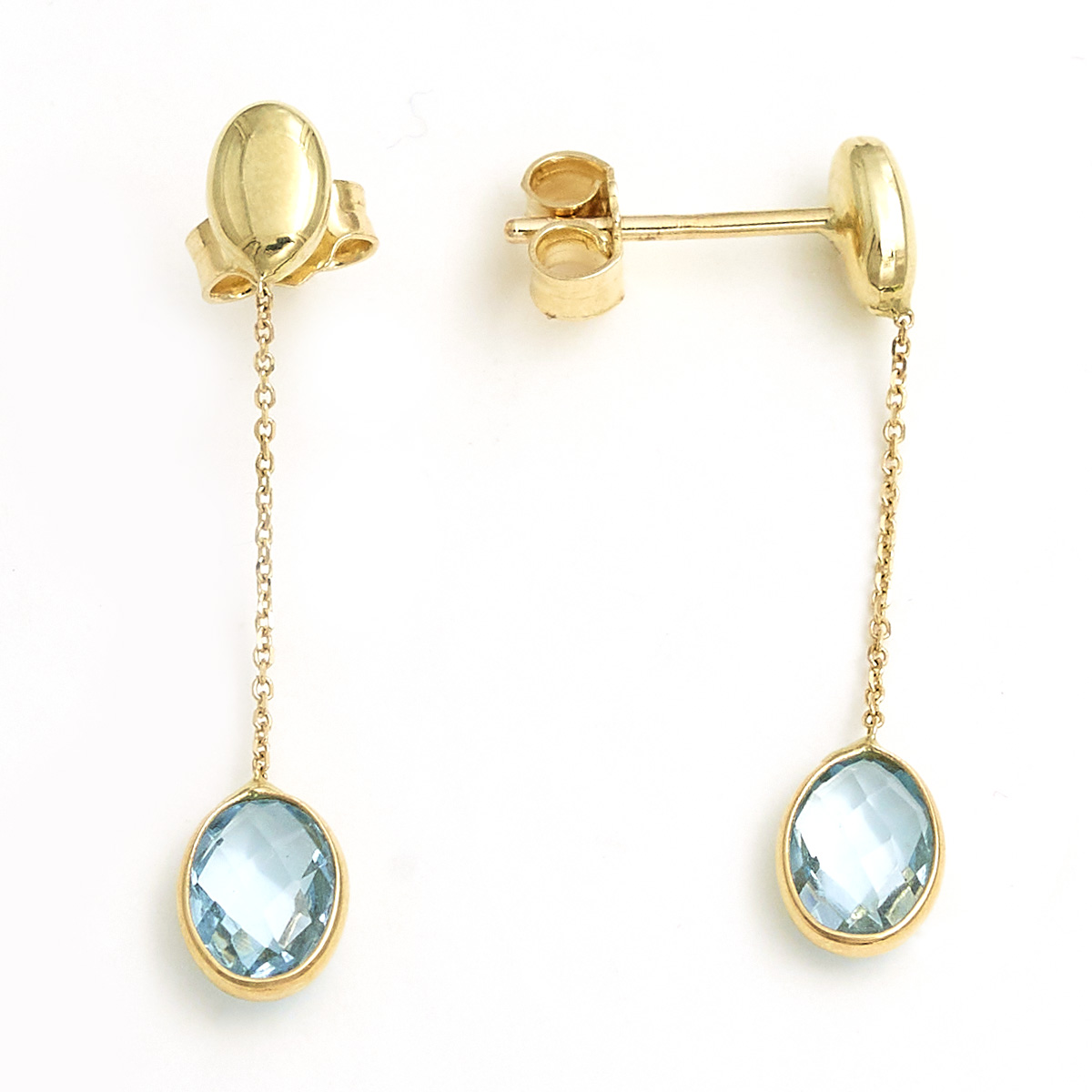 Κρεμαστά σκουλαρίκια με ημιπολύτιμη πέτρα blue topaz. Προσιτή πολυτέλεια για κάθε γυναίκα.