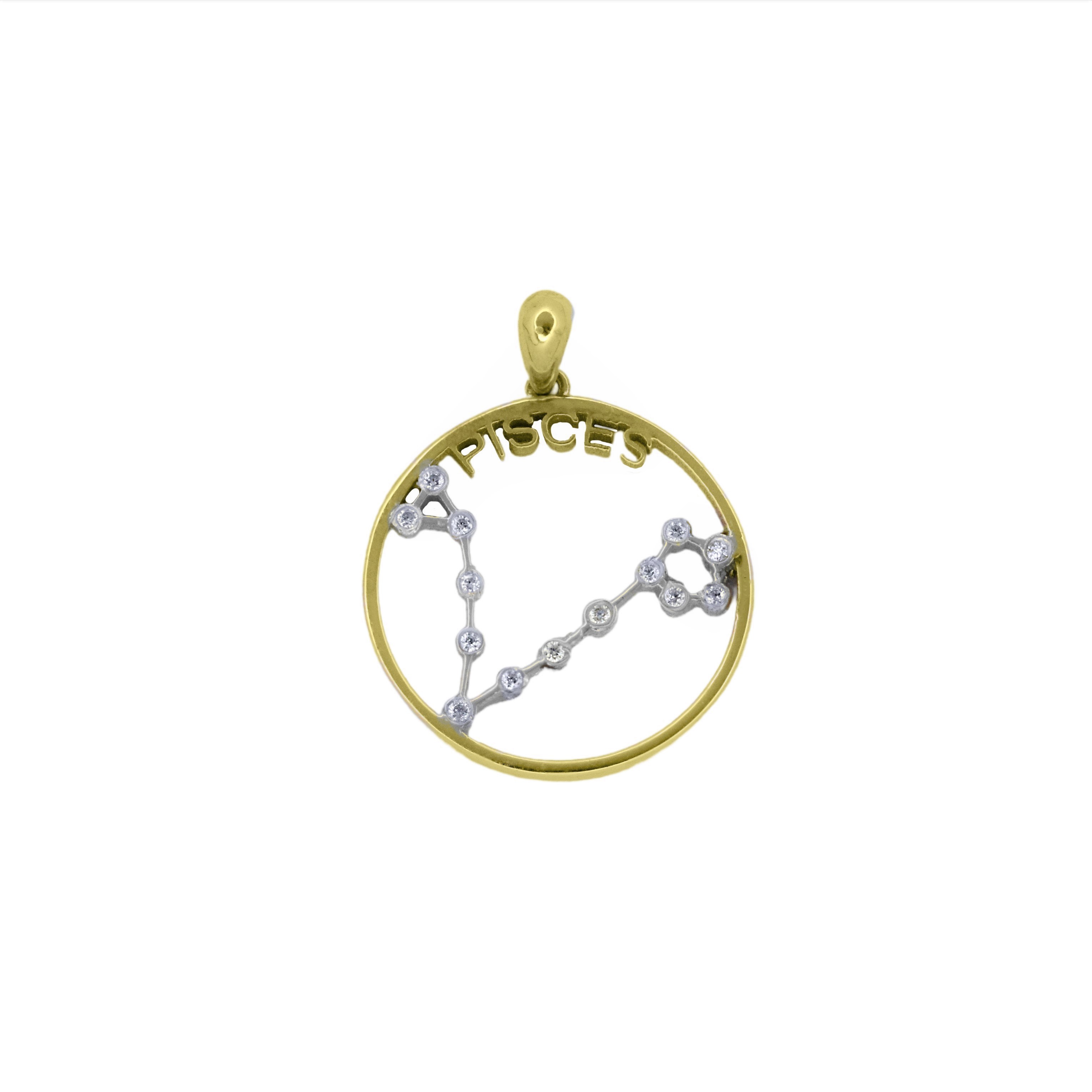 Μοναδικός και μοντέρνος σχεδιασμός ζωδίου σε χρυσό και με πινελές λευκόχρυσου αλλά και στολισμένο ιδαίτερα με λευκές πέτρες ζιργκόν